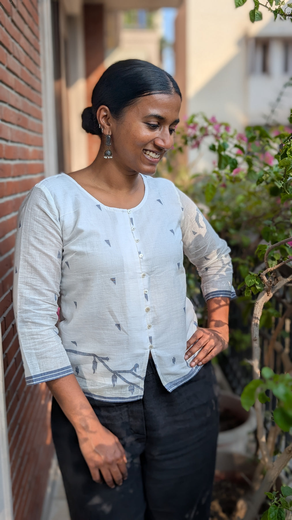 Jamdani is a handwoven cotton textile known for its delicate motifs that appear to float on the fabric. Each design is woven directly into the loom by skilled artisans, making every piece subtly unique.