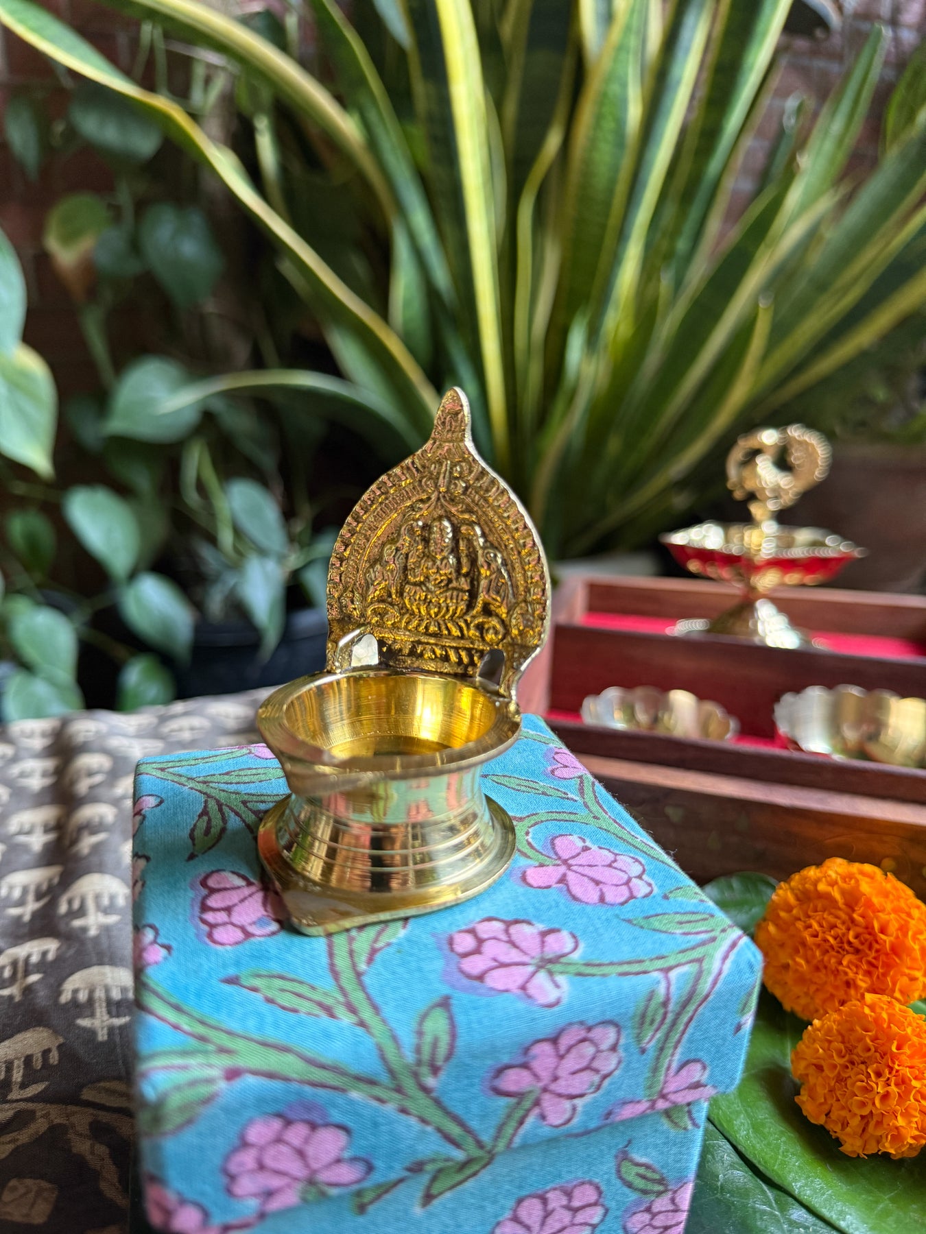 Inspired by the grace of Goddess Kamakshi, this diya is handcrafted in brass with fine detailing. Designed to hold oil, it blends tradition with versatility—perfect for festivals, special occasions, or simply adding a warm glow to your home. A thoughtful gift that carries both beauty and meaning.